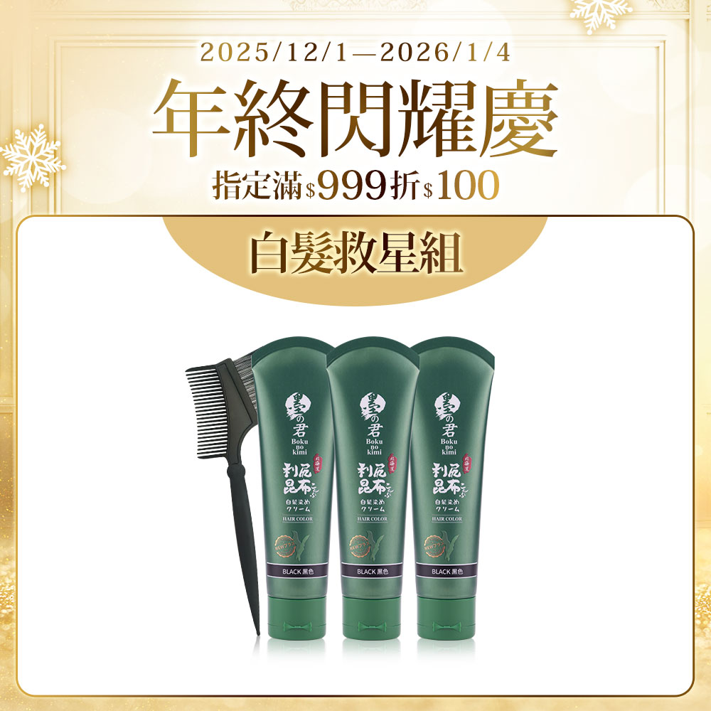 日本墨之君|北海道利尻昆布白髮染(升級版)榛果黑(70g/瓶X3瓶)+染髮梳X1