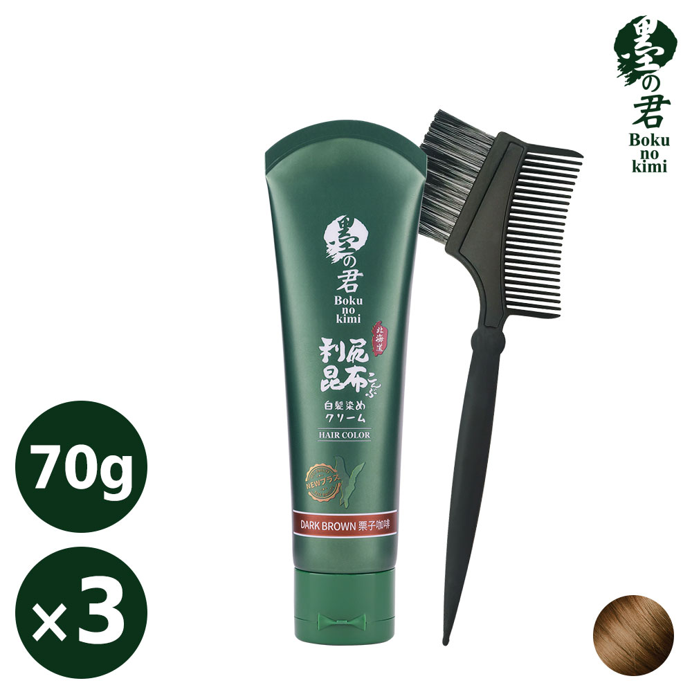 日本墨之君|北海道利尻昆布白髮染(升級版)栗子咖(70g/瓶X3瓶)+染髮梳X1 | 黑淬絲│植萃髮肌專家